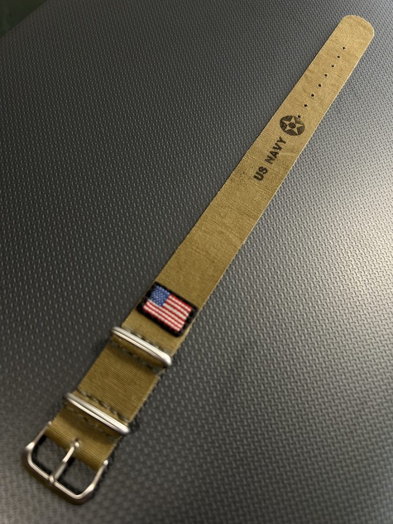 22mm James Bond style NATO with brushed s/s hardware and to fit wrist size 6.5 – 8 inches