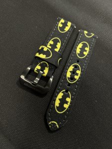 22mm Black canvas and leather Batman strap complete with black Pre-V buckle and to fit 6.5 – 7 inch wrist