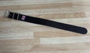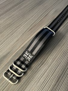 22mm James Bond style NATO with brushed s/s hardware and to fit wrist size 6.5 – 8 inches