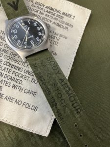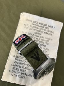 A piece of modern British Military history….this strap is made from a MK8 TYPE B CARGO PARACHUTE FLIGHT RELEASE SYSTEM.